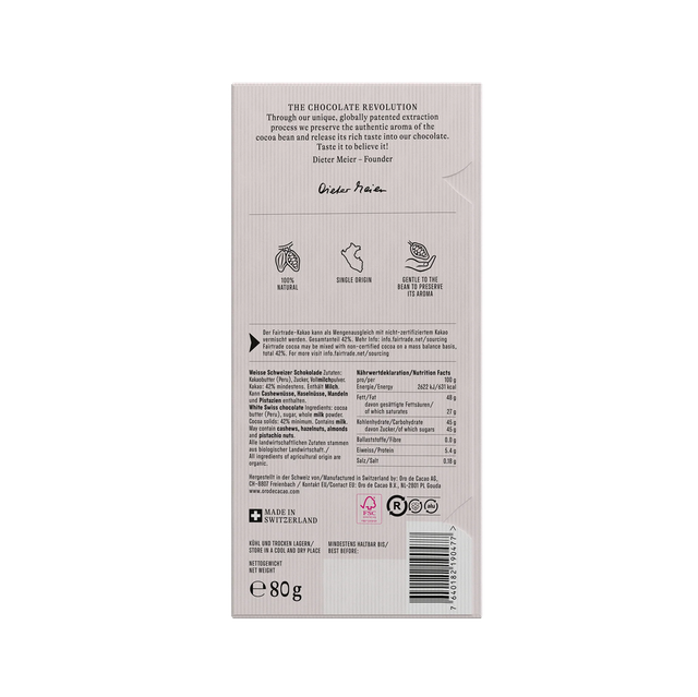 Hergestellt in der Schweiz von: Oro de Cacao AG, 8807 Freienbach